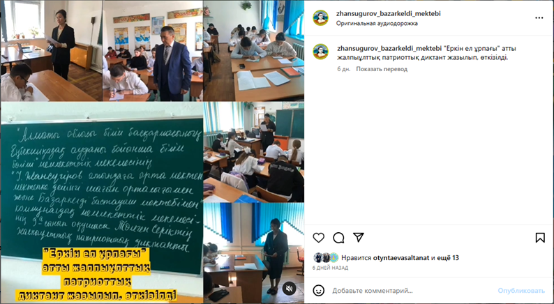 "Еркін ел ұрпағы" атты жалпыұлттық патриоттық диктант » І.Жансүгіров атындағы орта мектепө МДШО