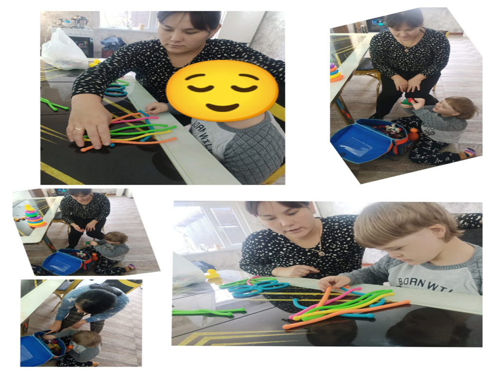 Үйден оқитын оқушылармен түзету- дамыту жұмыстары жүргізілді.Ерекше білім беруді қажет ететін балалардың әлеуметтік қызметтерді меңгеру тәсілдері қалыптасты. Әр түрлі бояу түрлерін атап сонымен жұмыс жасалды;«Уақытты анықтау» жаттығуы жасалды.