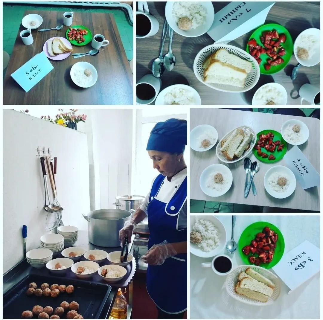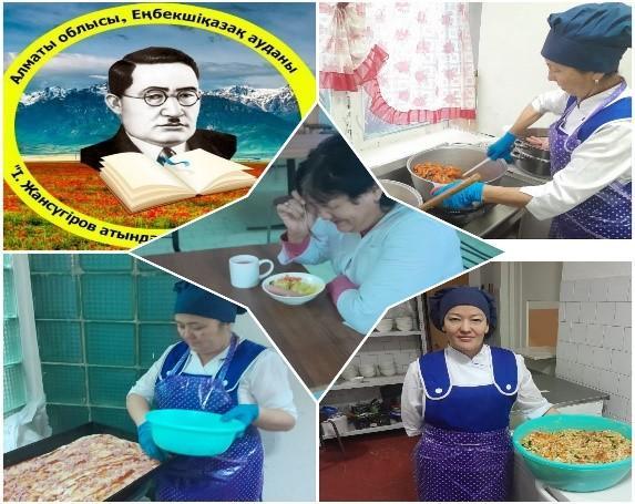 2023 жылдың 1 қыркүйегінен 1-4 сынып аралығында ЖБББ қорынан бастауыш сыныптары толығымен тегін ыстық тамақпен қамтылды. 5-11сыныптар аралығында көпбалалы және аз қамтылған отбасындағы бір анасымен , бір әкесімен тәрбиеленіп жатқан оқушылар арасынан 54 оқушы ыстық тамақпен қамтамасыз етілді және жалға алушы есебінен 16оқушыға тегін ыстық тамақ берілді.