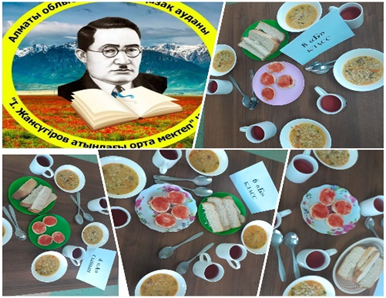 2023 жылдың 1 қыркүйегінен 1-4 сынып аралығында ЖБББ қорынан бастауыш сыныптары толығымен тегін ыстық тамақпен қамтылды. 5-11сыныптар аралығында көпбалалы және аз қамтылған отбасындағы бір анасымен , бір әкесімен тәрбиеленіп жатқан оқушылар арасынан 54 оқушы ыстық тамақпен қамтамасыз етілді және жалға алушы есебінен 16оқушыға тегін ыстық тамақ берілді.