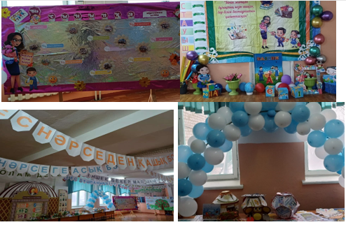 Апталық қарсаңында бастауыш сынып оқушылары оқитын мектептің 2 қабаты тақырыпқа, мерекеге сай шарлармен, банермен, түрлі әдемі суреттермен, гүлдермен безендірілді.