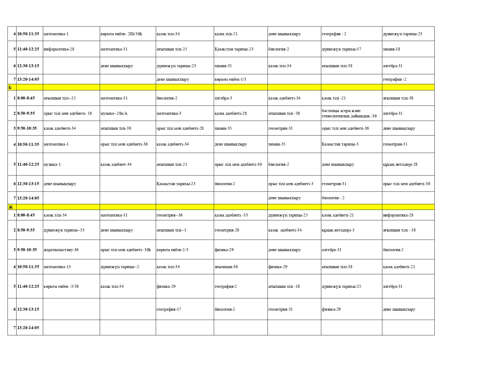 » » Сабақ кестесі 2025-2026 оқу жылы
