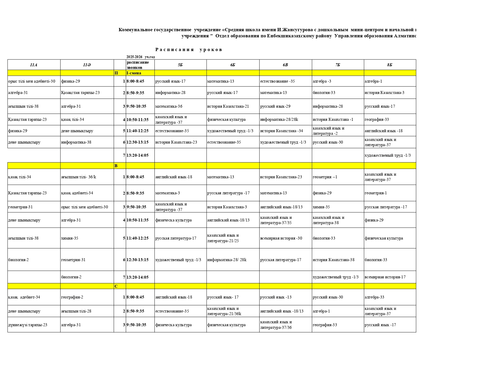 Сабақ кестесі 2025-2026 оқу жылы » І.Жансүгіров атындағы орта мектепө МДШО