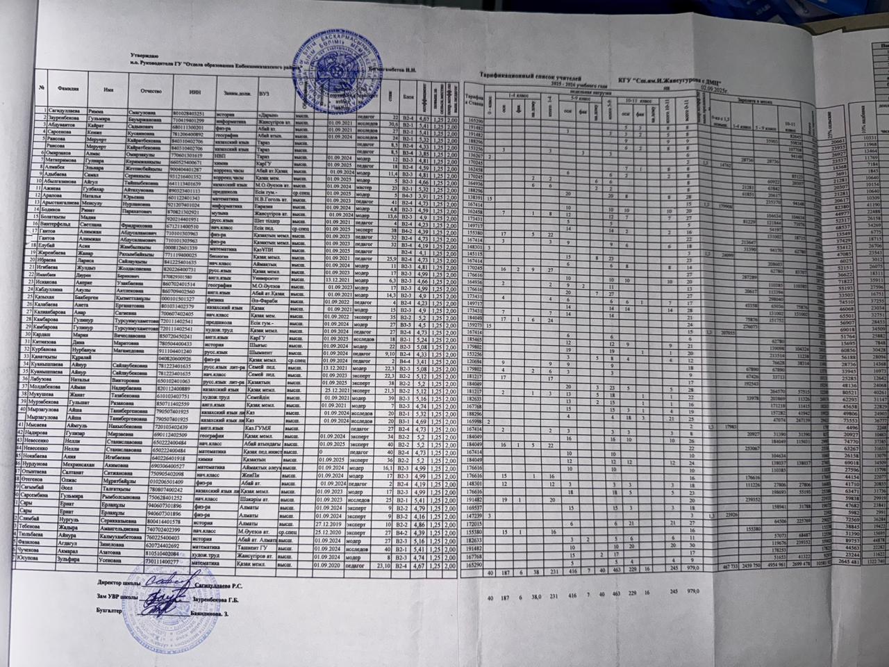 Тарификация Жансүгіров ОМ, 2025-2026 » І.Жансүгіров атындағы орта мектепө МДШО