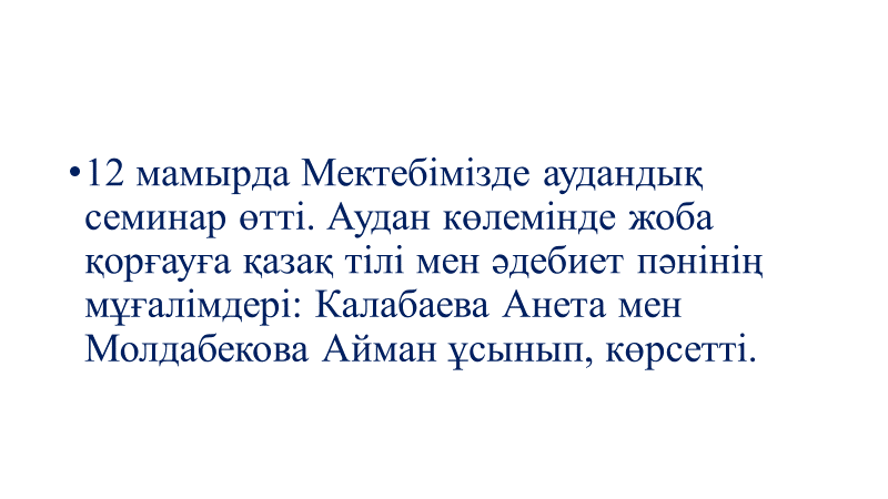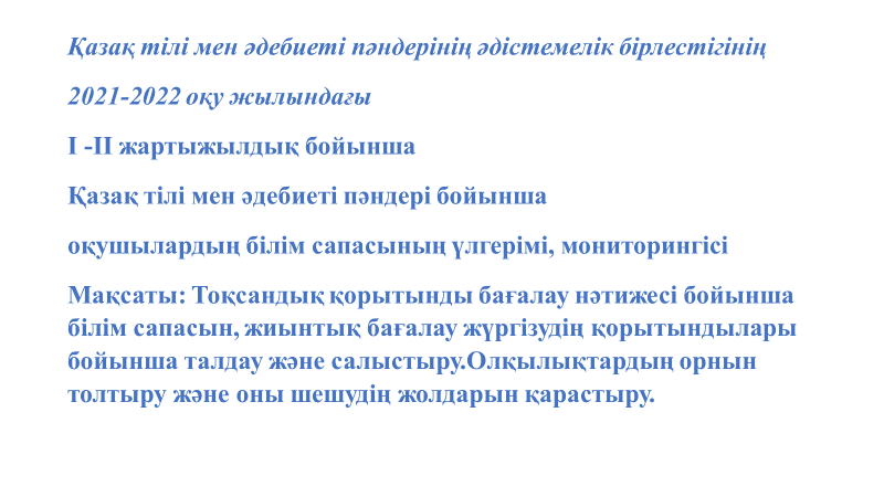 МО Қазақ тілі жылдық есеп » І.Жансүгіров атындағы орта мектепө МДШО