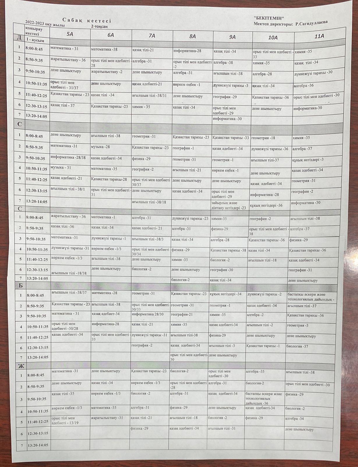 Сабақ кестесі » І.Жансүгіров атындағы орта мектепө МДШО