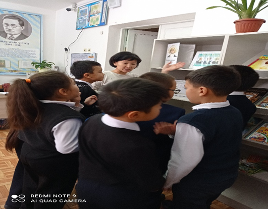 Мақсаты: Оқушылардың кітапханада өзін еркін ұстауға, қалаған кітабын алып оқуға үйрете отырып, олардың кітап оқуға деген қызығыушылығын арттыру.
