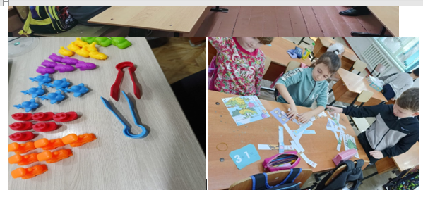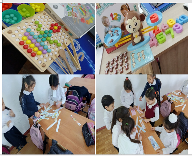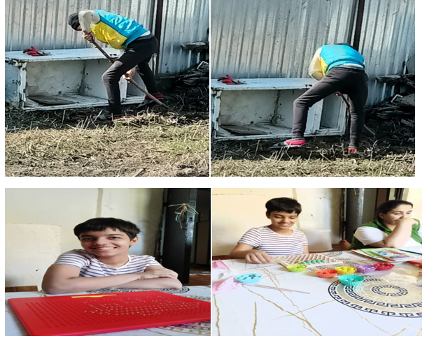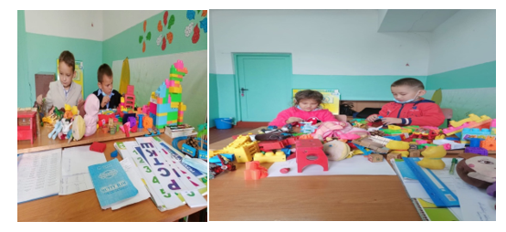 Баланың жасаған жұмысын кешенді түрде зерттеу қажеттіліктерін бағалау арқылы анықтау бойынша әр түрлі жаттығулар жасалды.0-1 сынып оқушыларымен «Қайшымен жұмыс істеу дағдыларын жаттықтыру» жаттығу жұмысы жасалды. «Күн» /қысқыш арқылы күн бейнесін жасау/ жаттығуы үйден оқитын оқушылар мен және 0,1 ші сынып оқушыларымен жүргізіледі. «Жыл мезгілдері»/берілген суреттерге қарай жыл мезгілдерінің белгілерін анықтау/ оқушыларға жыл мезгілдерінің суреттерін салдырып,ерекшеліктерін ажыратып суреттер салынды.Ұсақ қол маторикасын дамыту мақсатында үйден оқитын оқушылар мен және 0,1 сынып оқушылармен «Саусақ жаттығулары» жасалды.