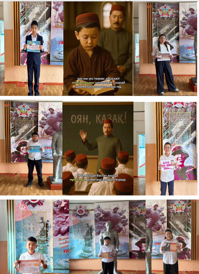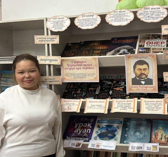 Жұмыс түрі: Балалар кітабының көрмесі. Бастауыш сынып оқушылары мектеп кітапханасындағы Алаш қайраткерлері жайлы танысып көрнекіліктер арқылы суретпен сөйлейді