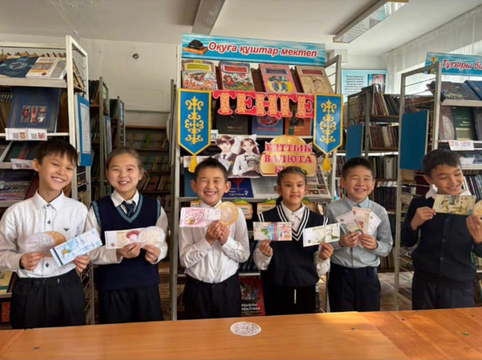 Жұмыс түрі:Теңгенің шығу тарихына шолу,оқушылар теңгенің  кітапханадығы суреттерін қарап,көрнекіліктерді ұстап көріа теңгенің бір-бірінен ажыратуды талқылады