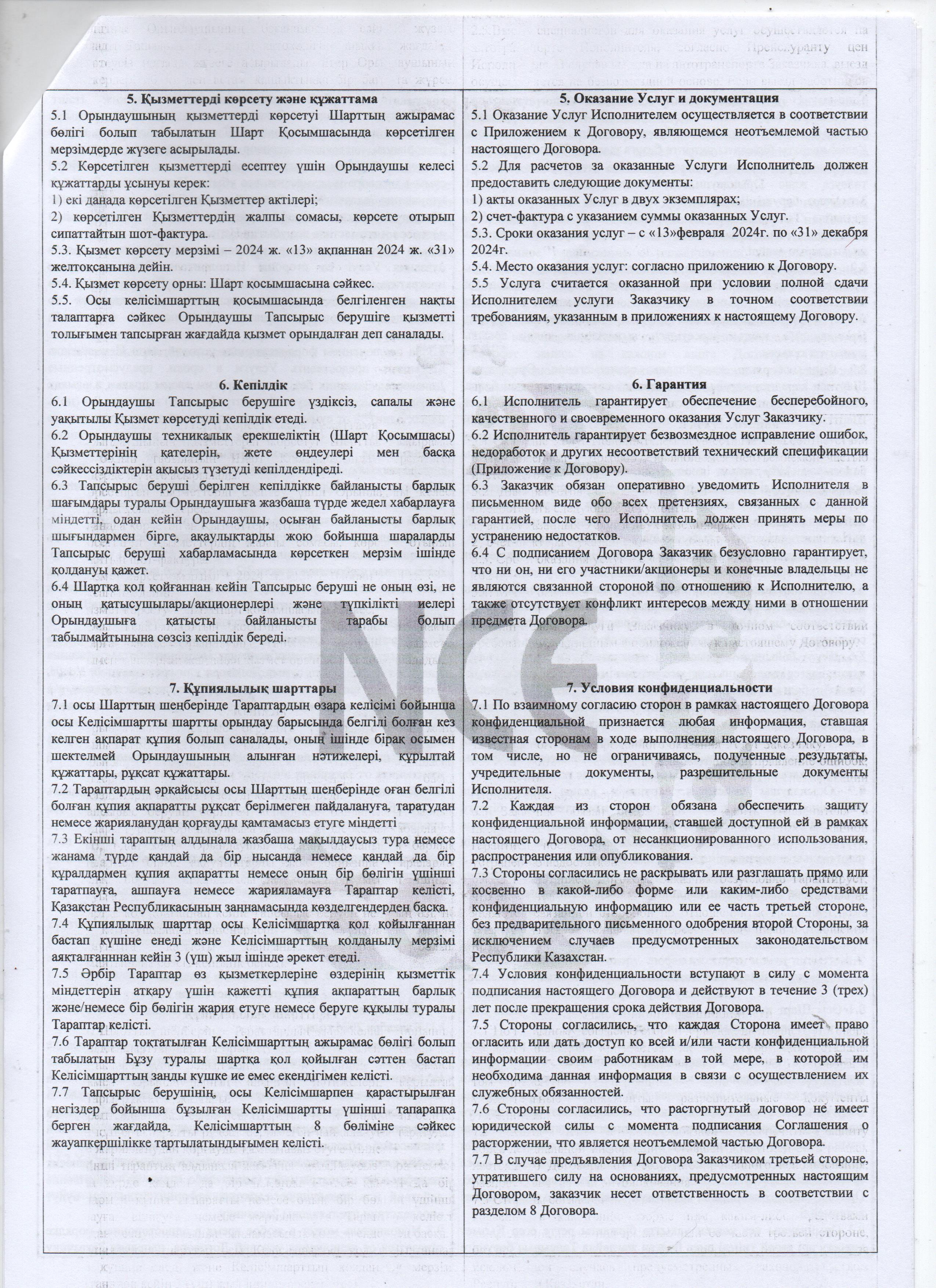 1. Договор составлен на казахском и русском языках, имеющих одинаковую юридическую силу, заключенный посредством веб-портала.